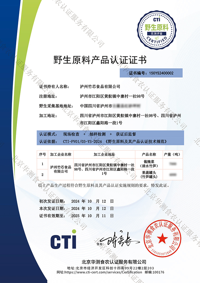 竹筍野生原料認證